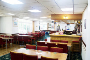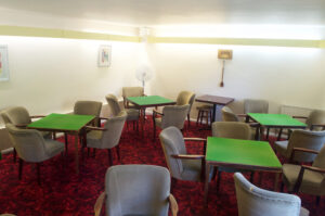 On entering the club you find yourself in the Hallway with a view of the ‘Flying Staircase’. This leads to the Club office. On the right of the hallway is the Panel Room. This is a small comfortable room with panelled walls giving it a warm feel. The panelling is from the liner ‘Mauritania’. The Panel Room is often used for private functions and meetings. It has facilities for business meetings including WiFi, and a ceiling mounted projector and screen which are often used for film shows, sporting events. Continuing along the hallway you come to the ‘Club Room’, this is the main bar of the Club and the venue for the Saturday night entertainment. A Raffle of drinks, chocolates and biscuits is held on Entertainment Night and on other occasions.
